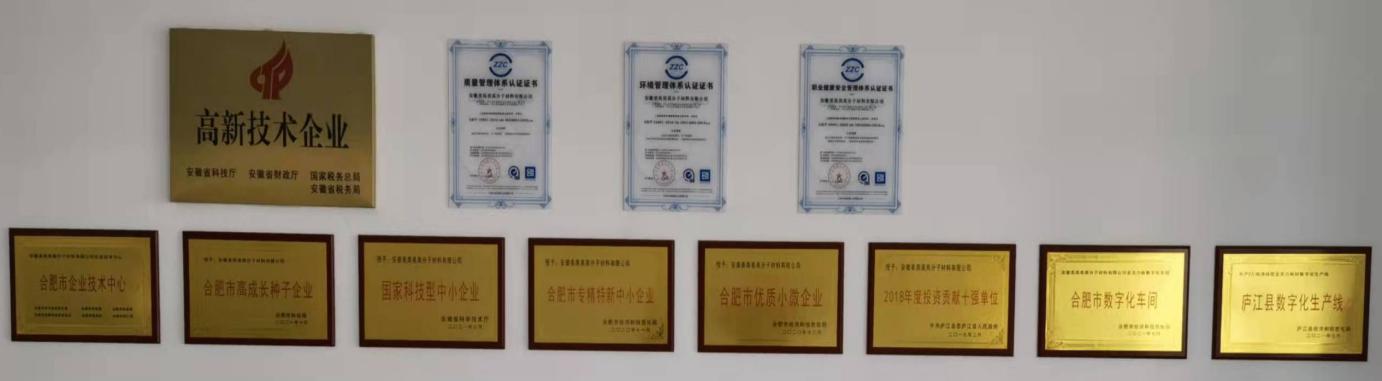 与合肥工业大学材料学院建立了产学研合作,设立了研发中心,组建了研发团队,研发人员51人,已授权了49项专利,获得了16项科技成果。被安徽省科学技术厅授于国家科技型中小企业、国家级高新技术企业,合肥市经济和信息化局授于合肥市专精特新中小企业,合肥市优质小微企业等荣誉称号。