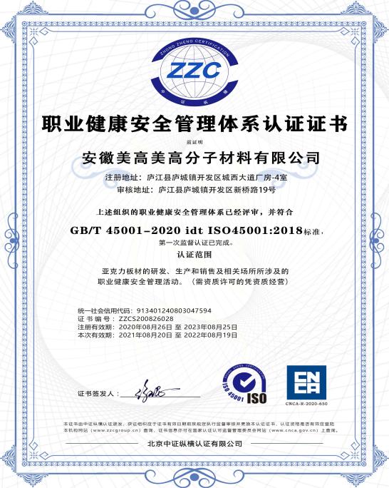 公司坚持“以科学理念经营企业、以创新思想指导发展、以高新产品抢占市场、以优质服务满足客户”的经营理念,在国内同行业率先通过ISO 9001质量管理体系、ISO 14001环境管理体系、GB/T 45001职业健康安全管理体系、安全生产标准化三级企业等体系认证。