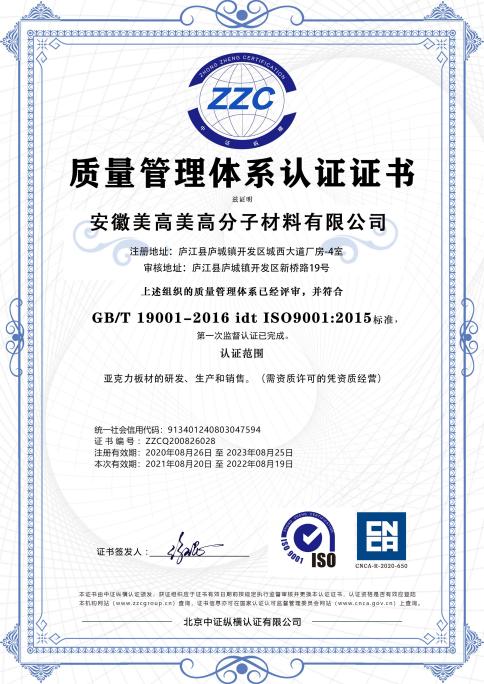 安徽美高美的生产能力远远不能满足市场需求,2014年能过六安市政府招商引资,在六安市经济开发区成立安徽迈明亚克力科技有限公司,主要从事亚克力板的生产、销售、出口业务。通过几年的发展,员工人数已超过500人,年发放职工薪酬3200多万元,2021年底公司总资产达到2亿元以上,年销售额超过3亿元,上交国家各项税费1000多万元。目前公司的生产经营规模已达到全球同行业第二,发展速度全球同行业第一,技术水平全球同行业第一。