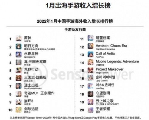从一月的情况来看,掌趣科技凭借《奇迹MU:正宗续作》等作品的优异表现,使其收入大幅增加。Sensor Tower商店情报平台最新数据显示:《奇迹MU:正宗续作》入围1月出海手游收入增长榜TOP20,位列增长榜单第8。显示出奇迹IP在海外强大的影响力。按照这一发展趋势,随着后续在全球地区战略的不断深化,2022年,掌趣科技海外市场占有率将有望得到更大幅度的增加。