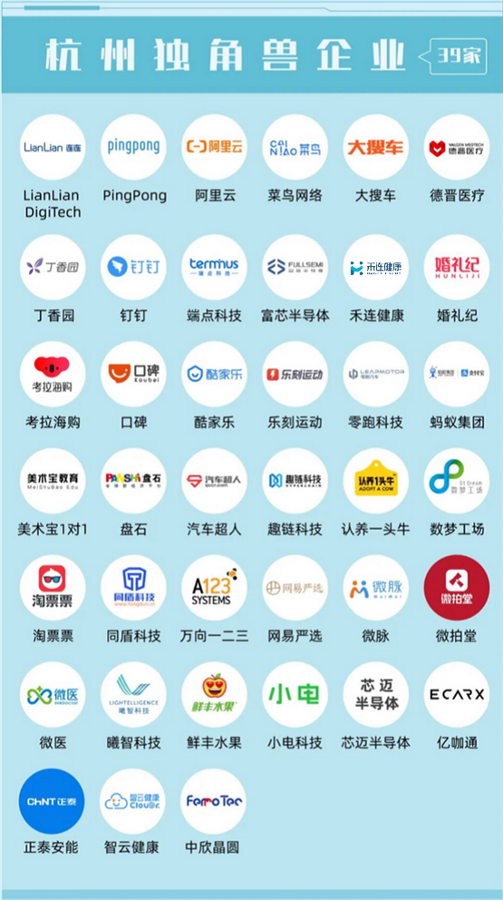 会上发布了“2022杭州市独角兽(准独角兽)榜单”和“中国未来独角兽榜单”。榜单显示,今年上榜的杭州独角兽企业有39家,较去年增加2家。其中禾连健康再次登上榜单,成为多次入选年度独角兽的企业。