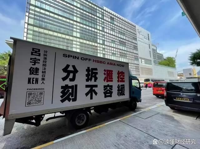 汇丰控股中小股东对分拆亚洲业务的诉求之激烈、意志之坚定,让汇丰管理层自己都始料未及。甚至在8月2日汇丰控股投资人见面会召开之前,会场外就有小股东租用货车表达诉求,货车上的横幅写着“分拆汇控、刻不容缓”。