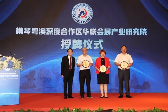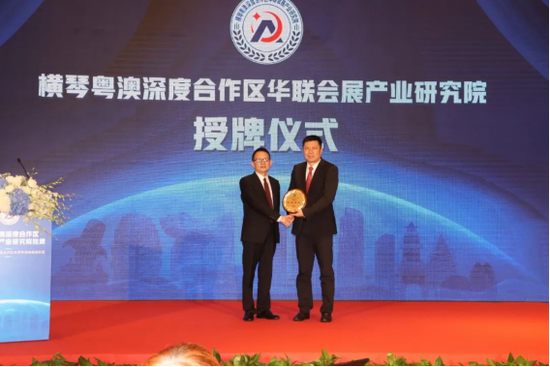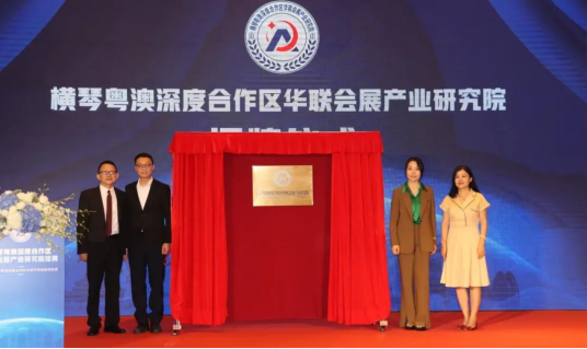 仪式活动期间中国会展经济研究会首席研究员储祥银,中国中小企业协会副会长、一带一路工委会主任商世伟,横琴粤澳深度合作区经济发展局文旅会展商贸处处长林衍傑,广东省人民政府横琴粤澳深度合作区工作办公室社会事务局副局长冯宇红,广东会展标准化技术委员会委员主任、广东会展组展企业协会会长刘松萍,澳门会展旅游业协会会长何海明等领导共同为华联会展产业研究院揭牌。
