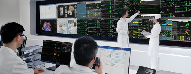 通过“三瑞”智慧生态系统和全院级数智化整体解决方案,帮助医护人员进行跨院区患者的均质化监护、检验、超声检查;通过“设备+IT+AI”的数智化医疗生态系统,辅助医生提升诊疗能力;通过全球首个临床落地的重症医疗大模型“启元”,在AI时代实现AI系统对临床诊疗思维的深度内化,助力临床全面提升诊疗精准度与质量。