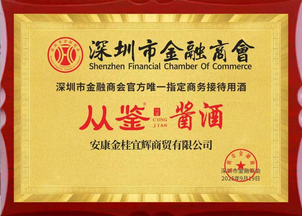 入库 “深圳市金融商会官方唯一指定商务接待用酒”,意味着从鉴酱酒成功扎根深圳这一核心枢纽,深度辐射粤港澳大湾区,精准触达广东、香港、澳门三地的金融高净值人群,成为连接湾区高端商务往来的 “情感纽带”。