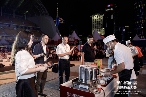 10月12日,广州海心沙广场,天空虽笼着一层阴沉的薄云,但一场热烈的比赛——黑白杯第四届湾区奶茶大赛决赛正在拉开帷幕。