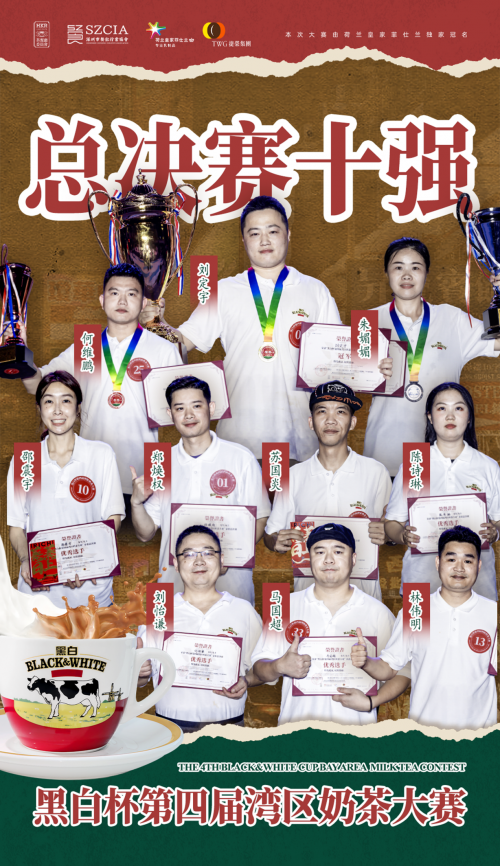 随着评委们的认真打分与紧张的统计,第四届“黑白杯湾区奶茶大赛”决赛的最终结果终于揭晓。经过激烈角逐,来自深圳、广州、上海三地的多位优秀选手脱颖而出,刘定宇、朱媚媚、何维鹏三人分别获得冠军、亚军、季军荣誉称号。