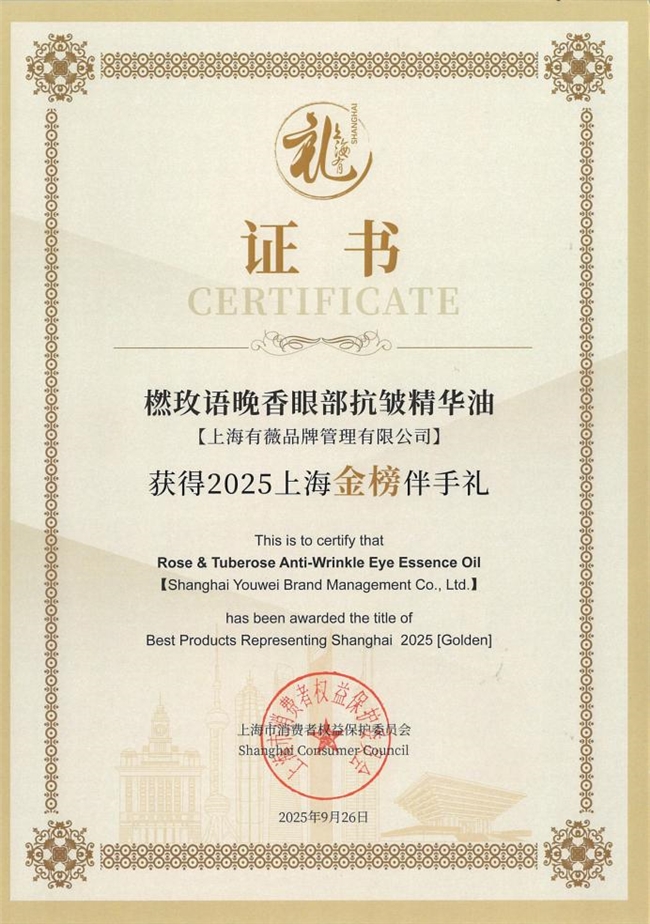 自创立以来,橪品牌始终遵循“精、纯、卓、效”四大研发标准,从全球优质植萃庄园溯源原料,坚持不使用化学合成香精,所有产品的香气均来自精油本身的天然芳香。品牌亦通过IFA国际芳疗师协会认证,橪茶语玫瑰精华油荣获法国国际化妆品“创新匹亚”大赛国际创新产品奖,同时获得老爸评测品质认可授权,橪玫语晚香眼部抗皱精华油凭借卓越品质与核心实力成功斩获 2025 年度上海「金榜」伴手礼荣誉。橪持续验证产品在肌肤改善与情绪舒缓方面的双重功效。