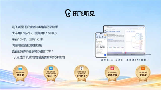 依托自研的讯飞星火大模型底座,科大讯飞升级发布讯飞智文、讯飞听见、讯飞翻译APP及星火陪练,通过“工具减负”,让用户告别繁琐操作,实现效率跃迁,从而专注于更有价值的创新与思考。