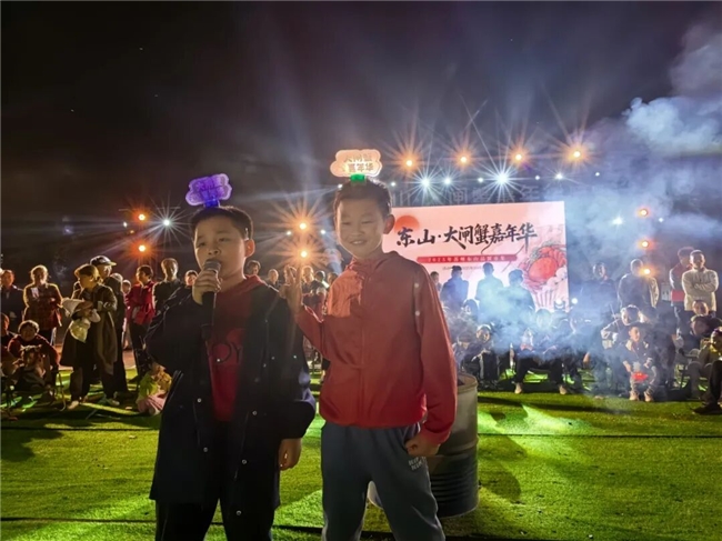 自晨曦至夜晚,陆巷村沙滩山码头欢乐的气氛从未间断。主舞台上,乐队演出引爆全场,观众随节奏摇摆欢呼,声浪如潮;魔术表演惊喜不断,引得观众连连惊呼;而苏州评弹的吴侬软语悠然响起,又将人瞬间带入江南水乡的婉约意境。舞台互动区人头攒动,参与者不仅有机会获得大闸蟹周边礼品,还能赢取“一元蟹券”,以1元价格带走一只鲜活大闸蟹。