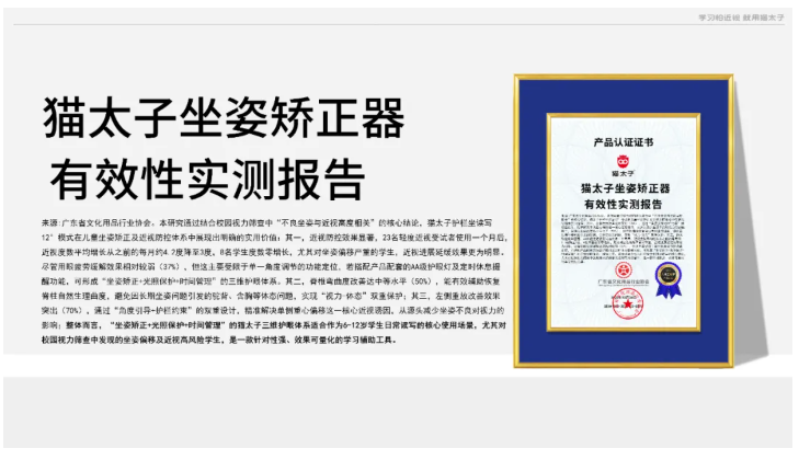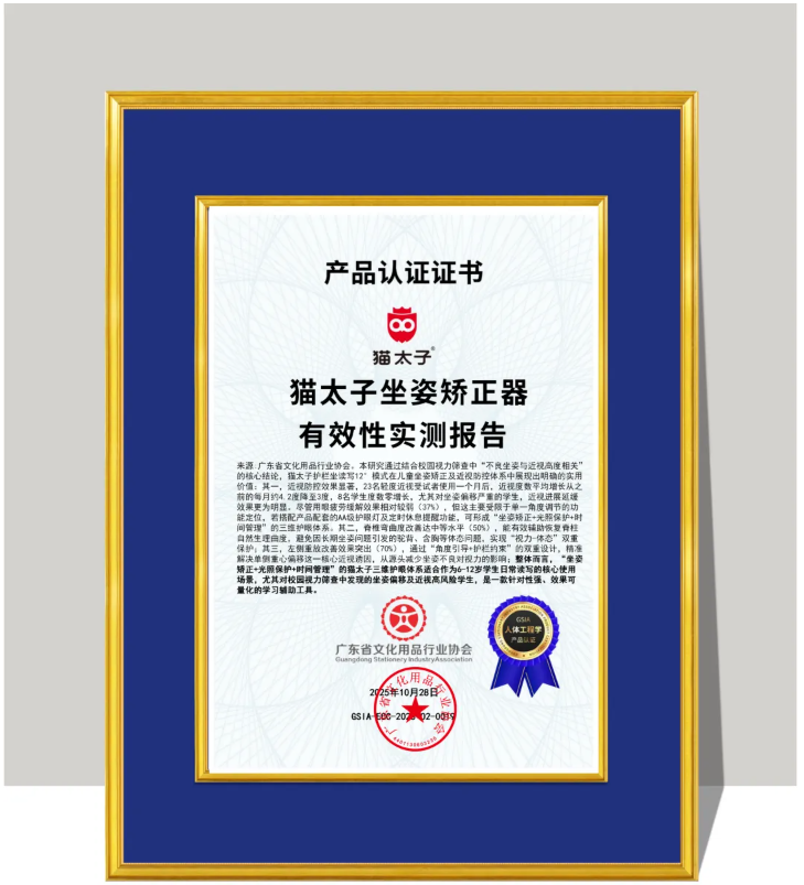 整体而言,“坐姿矫正+光照保护+时间管理”的猫太子三维护眼体系适合作为6-12岁学生日常读写的核心使用场景,尤其对校园视力筛查中发现的坐姿偏移及视高风险学生,是一款针对强、效果可量化的学辅助工具。