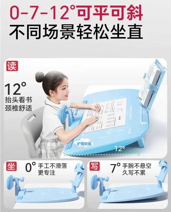 来源:广东省文化用品行业协会。本研究通过结合校园视力筛查中“不良坐姿与视高度相关”的核心结论,猫太子护栏坐读写12°模式在儿童坐姿矫正及视防控体系中展现出明确的实用价值:其一,视防控效果显著,23名轻度视受试者使用一个月后,视度数均增长从之前的每月约4.2度降至3度,8名学生度数零增长,尤其对坐姿偏移严重的学生,进展延缓效果更为明显。尽管用眼疲劳缓解效果相对较弱(37%),但这主要受限于单一角度调节的功能定位,若搭配产品配套的AA级护眼灯及定时休息提醒功能,可形成“坐姿矫正+光照保护+时间管理”的三维护眼体系。其二,脊椎弯曲度改善达中等水(50%),能有效辅助恢复脊柱自然生理曲度,避免因长期坐姿问题引发的驼背、含胸等体态问题,实现“视力-体态”双重保护;其三,左侧重放改善效果突出(70%),通过“角度引导+护栏约束”的双重设计,精准解决单侧重心偏移这一核心视诱因,从源头减少坐姿不良对视力的影响。
