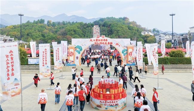 10月29日,“九九重阳登寿岳·万人同吃长寿面”系列活动在南岳衡山盛大举行。多位百岁“寿岳寿星”接受“麻姑献寿”集体寿礼,九对金婚夫妇重温结婚誓言,现场节日气氛浓厚。