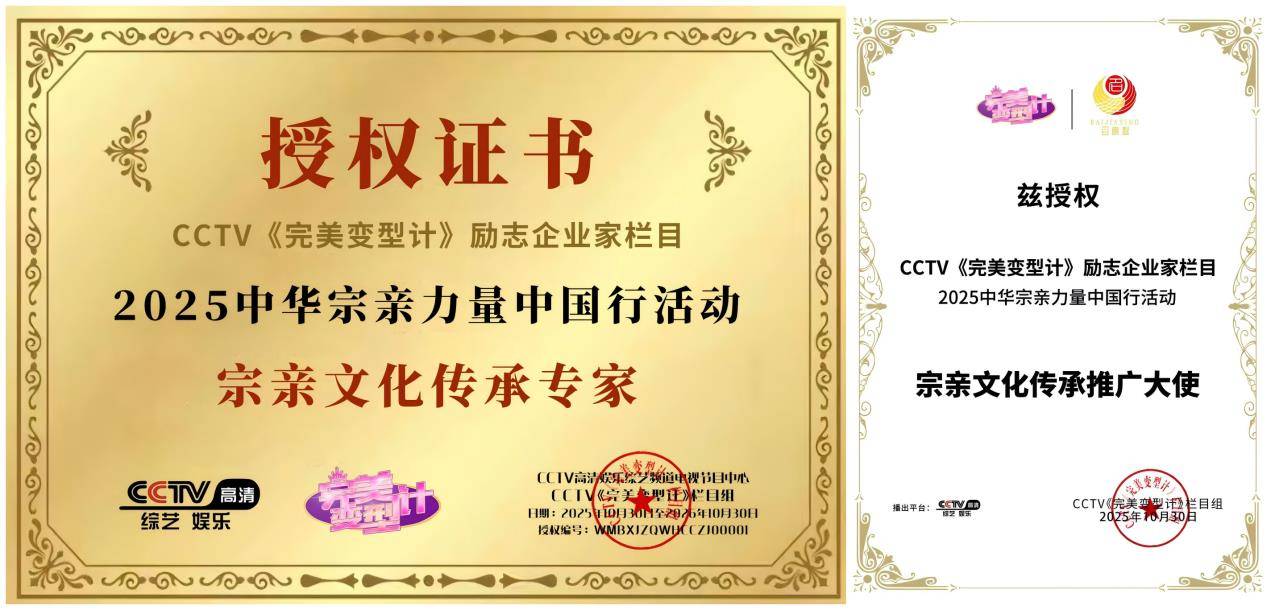 核心合作内容之一的独家专栏《家族的荣耀》将在《完美变型计》全年系统性播出,100位顶尖宗族传承专家将陆续登台,分享文化延续、财富传承与家族治理的实战经验。同时,双方将联合评选1000名“宗族传承全球大使”,获奖者将在CCTV平台获公开表彰。此外,北京、上海、广州、西安等十城将举办“家族传承与慈善”主题发布会,融合地方姓氏文化特色展示落地成果。