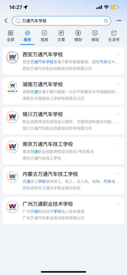 现在打开支付宝搜索“万通汽车学校”,选择学校即可预约入学