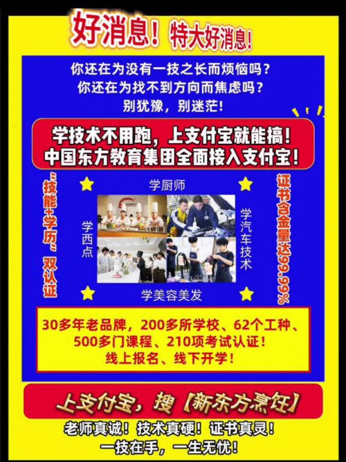 一技在手,一生无忧;支付宝一开,技能自然来!