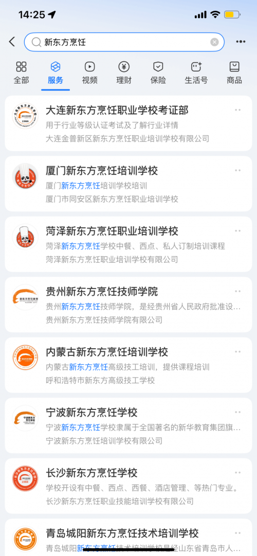 现在打开支付宝搜索“新东方烹饪”,选择学校即可预约入学