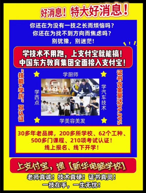 新华电脑学校 × 支付宝 —— 你的技能,立“码”上“新”!