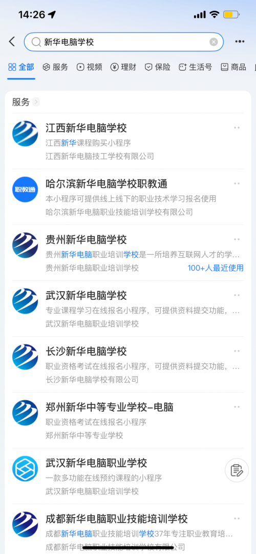 现在打开支付宝搜索“新华电脑学校”,选择学校即可预约入学