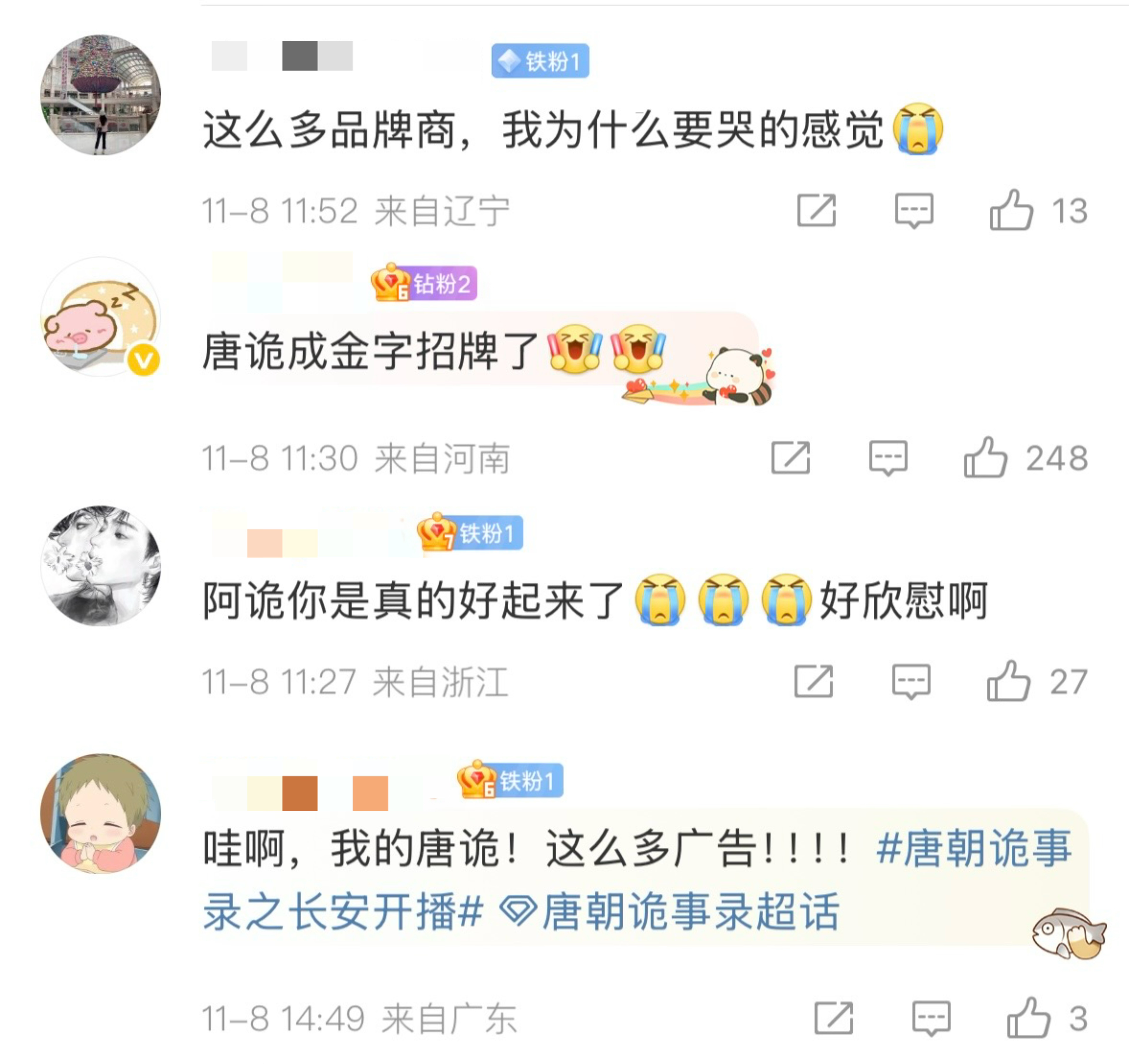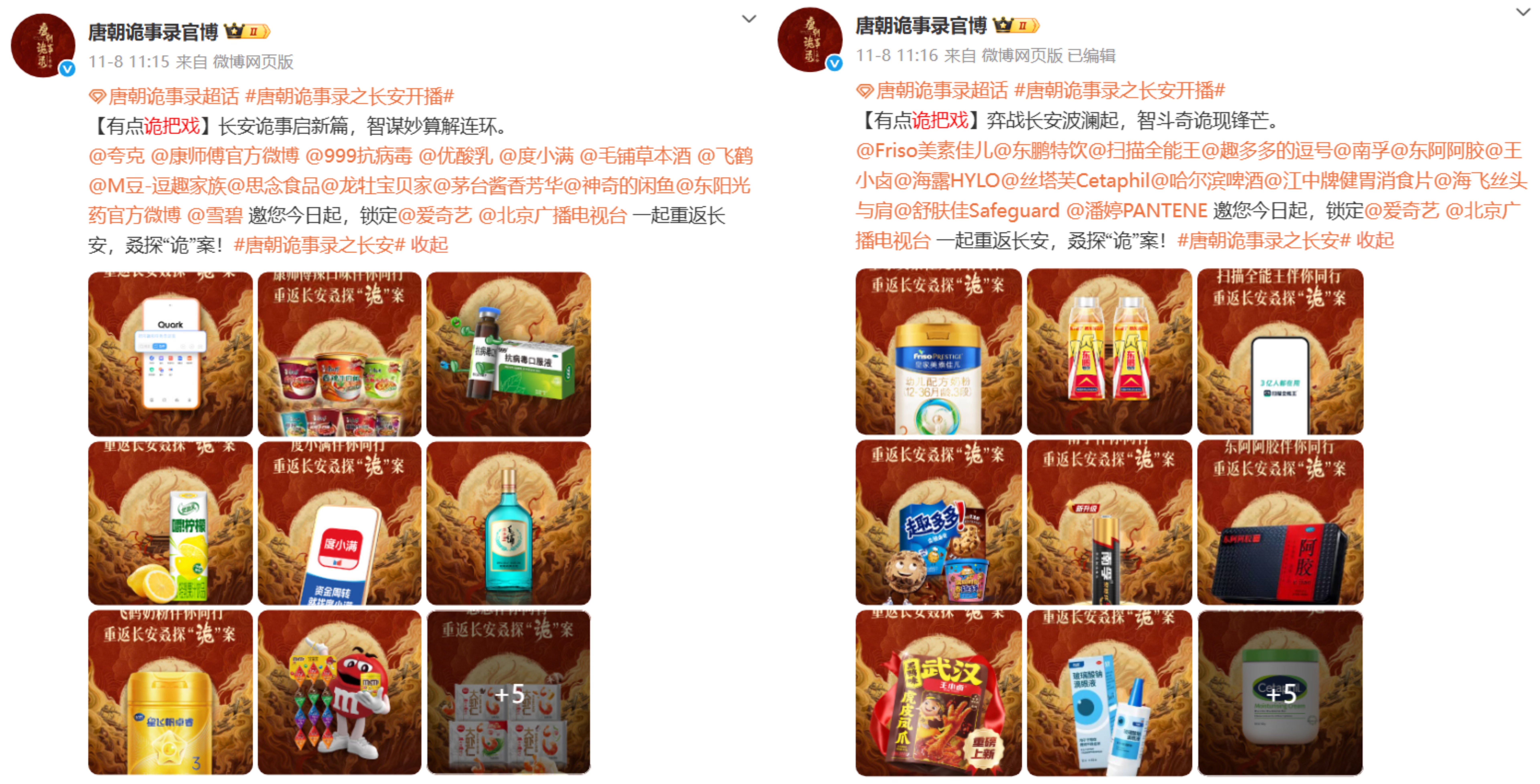 剧集商业表现同样亮眼,成功吸引四十余家品牌合作,品类覆盖酒水、日化、医药、母婴、数码等多个领域。《唐朝诡事录之长安》用实打实的数据,印证了“养成系IP”强大的市场号召力,成为品牌年末营销布局中炙手可热的合作首选。