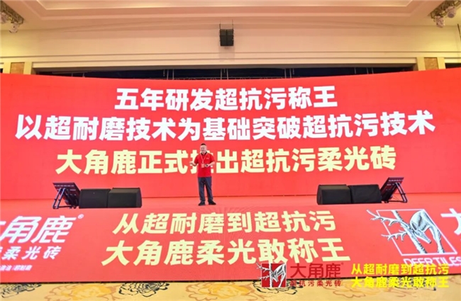 2025年,大角鹿站在技术革新的新起点,敏锐洞察消费者使用痛点,在其独创且数次迭代的超耐磨钻石釉技术基础上,突破性开创出超抗污钻石釉技术,实现了瓷砖核心性能的系统性飞跃。