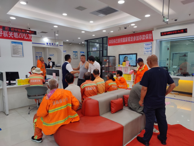 面对武清区400余名环卫工人的工资代发需求,廊坊银行天津武清支行与武清小微支行迅速组建专项服务小组,以“现场+柜面”双渠道服务,为环卫工人提供一站式金融支持。考虑到环卫工人年龄较大、工作分散、日常辛苦的实际情况,支行派出3名业务骨干走进工作场所,现场为环卫工人办理工资卡开立与激活,并指导手机银行操作;网点内则提前备好茶饮、自助充电台、微波炉等工会驿站设施,工作人员分工明确,协助完成取号、填单、开卡等流程。服务现场还开设“消费者权益保护公益小课堂”,普及存款保险、防范电信诈骗、安全用卡等知识,提升环卫工人金融安全意识。