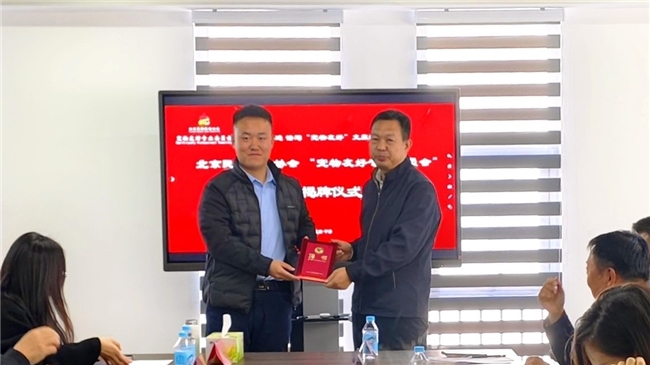 北京民俗旅游协会会长魏广川为李肖静 程东颁发副主任聘书