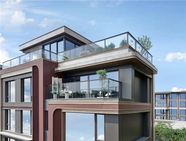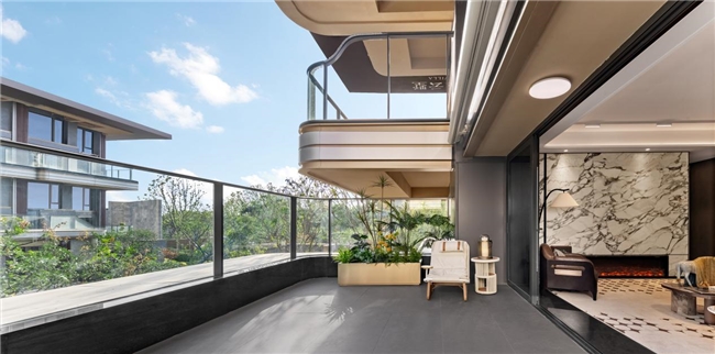 厦门樾云墅的建筑美学堪称一大创新亮点。项目甄选爱马仕灰石材等全球奢石名木于约63米归港门庭处营造出极致的归家礼序,同时其立面深度融合闽南元素——叠墅采用“上砖下石”、拼花镜墙与闽南红陶釉板;高层则提取燕尾脊与山花形态,以大尺度玻璃幕墙与金弧线铝板勾勒出挺拔天际线,实现了新闽南美学的当代转译与国际品味的共鸣。