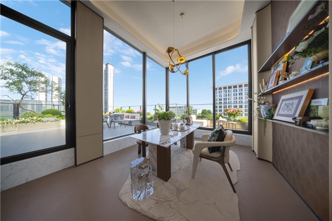 项目创新提出“樾级四代宅”理念,涵盖建面约139㎡四代小高层、约174㎡复式洋房及约189-198㎡纯粹叠墅等多样产品。通过错层空中花园、270°环幕视野、南北双露台、约6米挑高跃层及行政级双套卧等设计,精准回应了现代家庭对阳光、空间、隐私与代际融合的深层需求,重拾生活的“呼吸感”。