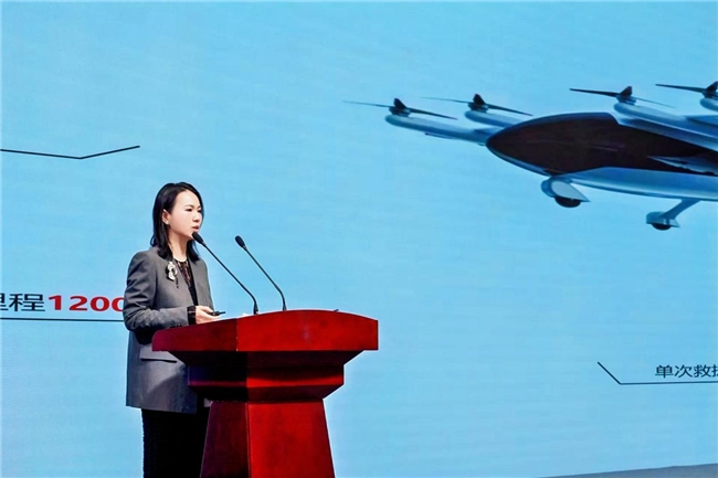 图:武汉福生通用航空有限公司董事长陈昭言介绍eVTOL飞行器低空救援技术