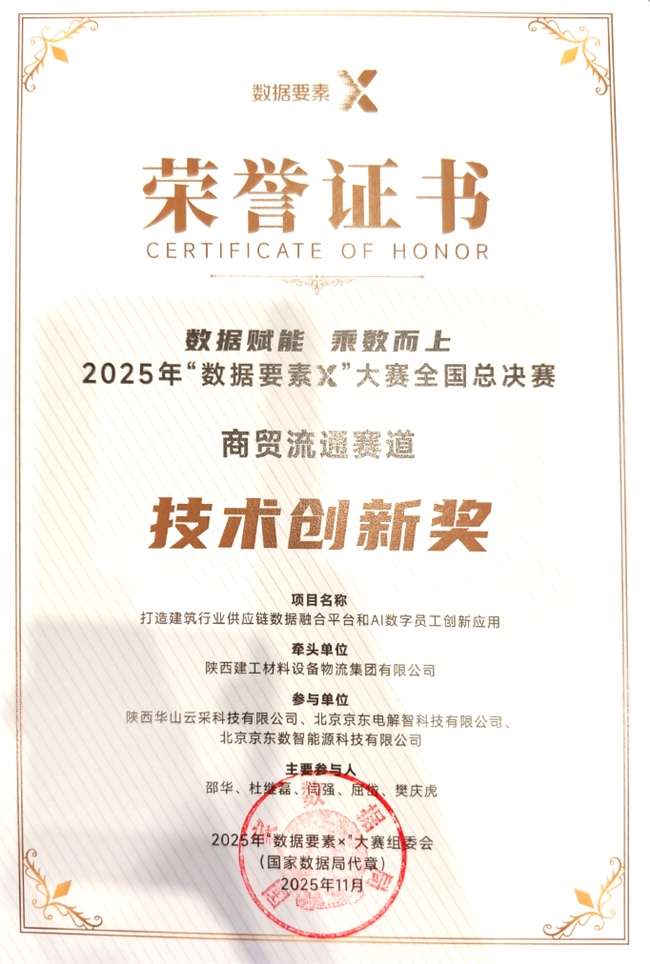近日,2025年“数据要素×”大赛全国总决赛成绩揭晓,京东工业携手陕建物流集团打造的“建筑行业供应链数据融合平台”项目,在经历省和国家两个层级4轮激烈角逐后,最终在893支国赛队伍中脱颖而出,摘得“全国技术创新奖”。该参赛项目展示了企业聚焦建筑行业供应链核心场景,整合25万个数据源和百亿级建筑供应链数据,构建1300维数字画像和165个供应商动态分类数据标准,服务赋能15万+链上企业和千亿级市场的技术架构、应用场景和商业价值。
