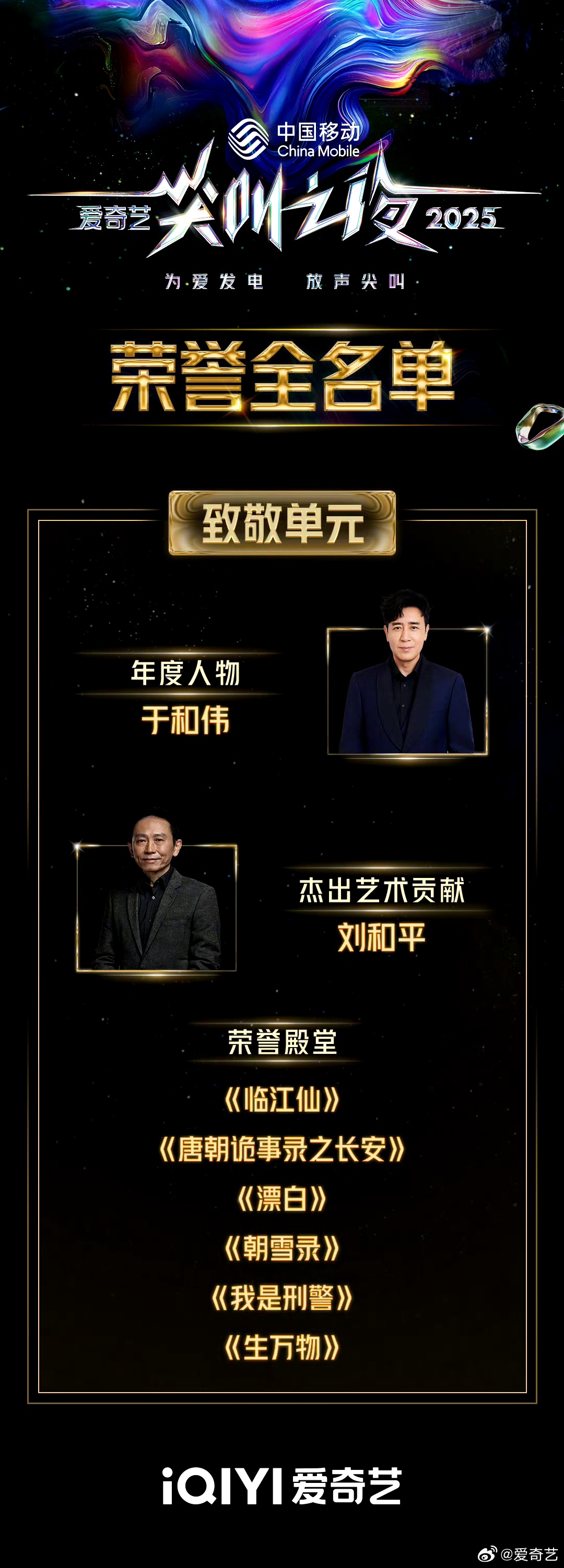 2025年,爱奇艺坚守创作初心在各领域推出高品质多元化的作品,收获赞誉。尖叫之夜现场揭晓了“综艺单元”“海外单元”“电影单元”“戏剧单元”“尖叫单元”“致敬单元”共六大单元63项荣誉,致敬这一年的优秀作品和台前幕后主创。