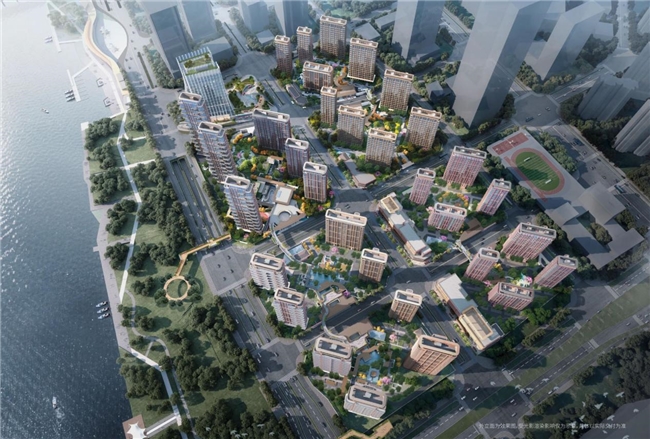 项目摒弃了传统住宅的机械排列,通过建筑高度的错落设计,主动参与城市天际线的塑造,使建筑群本身成为一幅与运河共生的立体画卷。