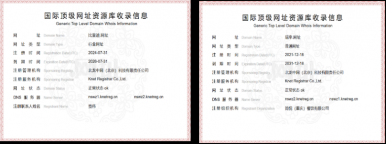 1. “.网址”的开放性风险:“.网址”,采用开放注册、先到先得的规则。系统查询发现“茅台.网址”、“安踏.网址”、“比亚迪.网址”、“瑞幸.网址”的注册人并非真实品牌人注册。如果真实的品牌随便被他人抢注,那如何能成为民众心中可识别的入口呢?这难道不是为侵权人侵犯他人品牌大开便利之门吗?这种左手收权利人保护费,右手收侵权人注册费的网址公信力又何在?