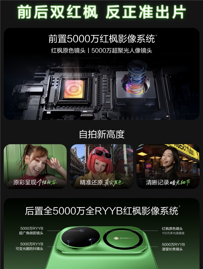 当然了,华为nova 15系列“耀目双星”设计不是单纯的为了好看,超大Demo证明了影像系统的强悍。业界唯一前后双红枫影像系统,大幅提升前置镜头自拍效果,5000万像素自拍镜头保证清晰度,红枫镜头保证夜间自拍也能还原真实色彩,无论什么时间、什么场合都是稳稳的自拍神器。