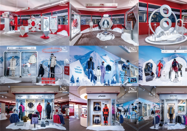 大秀之外,天猫在雪场核心区打造了 “天猫飞行空港”慢闪空间。这里不只有静态陈列,更是互动体验的舞。华为 Mate80 系列展示了在云顶滑雪场拍摄的滑雪大片,李宁通过航天动态保暖科技展现实力,鸭鸭以直观对比呈现羽绒服在不同温度下的能差异;美力城推出高科技鹅绒产品,UTO 则巧妙拆解内搭的实用设计;phenix 带来首款野雪主动救援装备,迪桑特专注展示高山滑雪专业装备……每个展位都是一个沉浸式的「体验装置」,等待雪友们亲自探索。