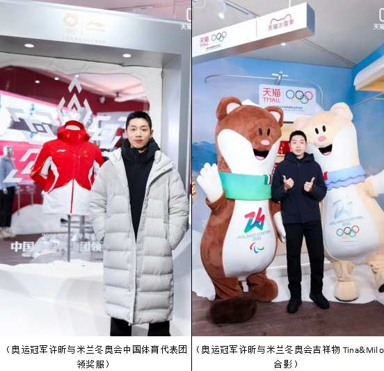 大秀彩蛋环节,身着节日盛装的猫天天,与2026年米兰冬奥会吉祥物Tina&Milo、北京冬奥会吉祥物马年限定马墩墩相继亮相,共同传递冬奥接力棒。乒乓球世界冠军许昕,冰壶冠军凌智等特别来宾登场,一同见证了在北京冬奥赛场的特别交接仪式。