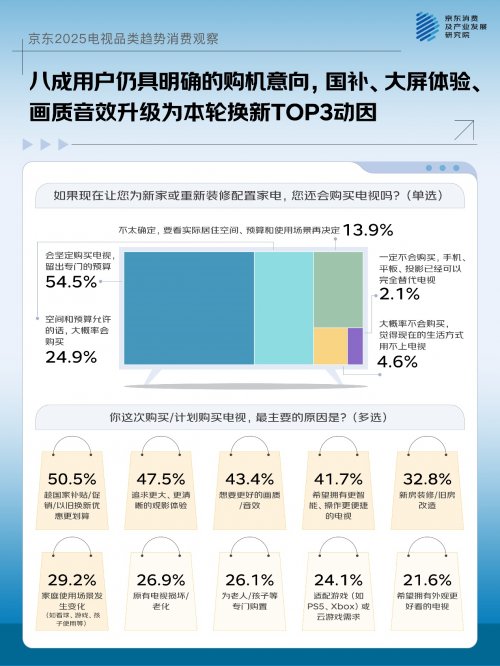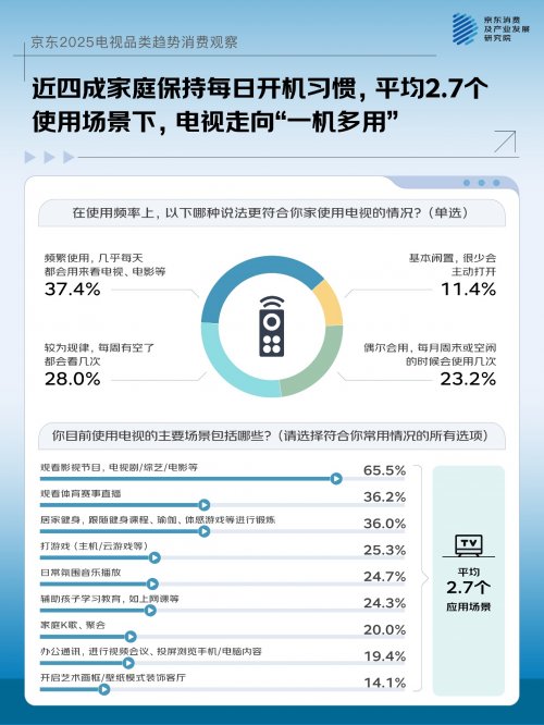 一机多用成主流 大屏、画质、国补成TOP3换新动因 京东联合品牌发布2025电视品类趋势消费观察