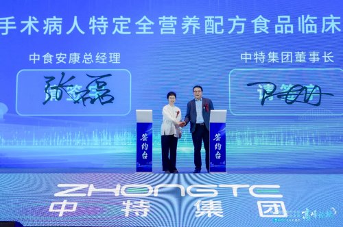 论坛现场亮点纷呈,多项重磅成果落地彰显产业活力。在全场嘉宾见证下,中特集团凭借参与“十四五”国家重点研发计划“食品营养与安全关键技术研发”重点专项,获授相关荣誉牌匾,标志着企业科研实力正式融入国家创新体系,为行业树立了科研赋能产业的标杆。同时,中特集团与中食安康(北京)科技发展有限公司达成“肥胖、减脂手术特定全营养配方食品临床试验合作”,直指特医领域高门槛细分赛道,为企业拓展产品管线、夯实核心竞争力奠定坚实基础。