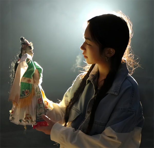 一切始于一次老家大扫除。小艾在爷爷房间角落一个落满灰尘的老樟木箱里,发现了一个用红布仔细包裹的布包。打开后,几个色彩虽已斑驳、但雕刻依旧生动的木偶头像和几件小巧戏服映入眼帘。她好奇地拿到爷爷面前,一直沉默寡言的爷爷眼睛瞬间亮了。那是一个午后,爷爷第一次为她表演了久违的“掌中戏”。方寸之间,木偶在爷爷布满岁月痕迹的手中活了过来,讲述着古老的故事。小艾被深深震撼了,“我从未见过爷爷那样神采飞扬,也从未想过,这么有趣的艺术,几乎要被我们这代人遗忘了。”那一刻,一个念头在她心中坚定下来:“爷爷,我想学,您教我吧。”