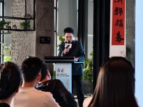 汉字源于自然,成于文明。从甲骨文到篆隶草楷,每一笔画,都是先民们对山川草木鸟兽的意象提炼,是自然生态在人类文明中的符号化凝结。而书法就是将这些自然符号用智慧通过笔墨线条和结构赋予它情感、气度还有法度,形成一种独立而完整的文字生态。它既代表着书写者的心性流露,也是对自然之美的再阐释和再创造。那这一次的这个展览恰如其分的代表了养文化之正脉,护笔墨之生态。策展人钟超先生,既是年轻的优秀的企业家,也是政协委员,又是生态协会的守护者,同时又是一位书法艺术家。几个看似跨度很大的身份,在他的身上融合呈现。这次钟超先生作为“养正·允公塾艺术家联展”的策展人,将书法艺术置于这样一个更广阔的文化生态的视野中,让笔墨不仅展现艺术之美,同时也是承载起了社会责任、文化责任和生态责任的这种统一。”