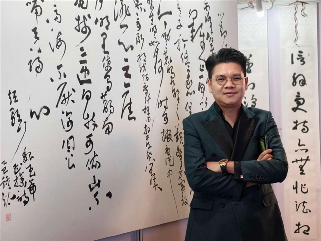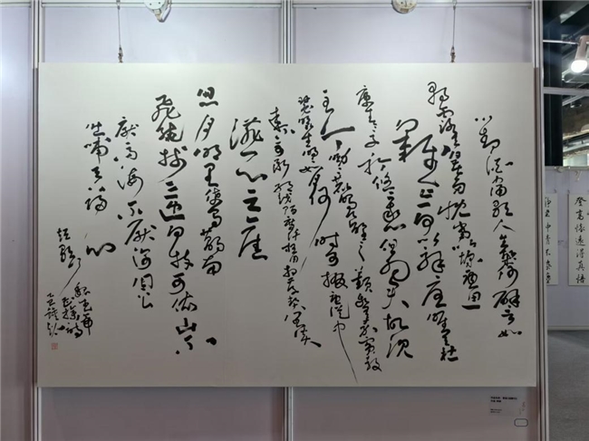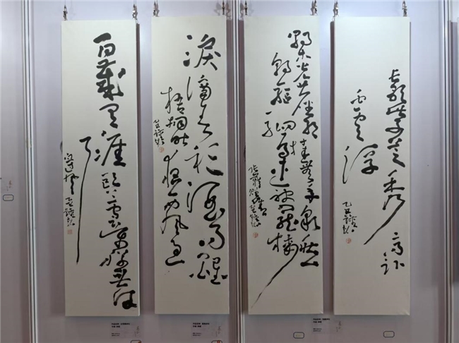 作为本次展览的策展人,钟超先生不仅统筹策划了整个展览的架构与主题,更以艺术家的身份亲自创作并展出两幅力作——《曹操·短歌行》与《草书·四条屏》。其作品笔力遒劲、气韵生动,既承传统之精髓,又具时代之风貌,受到现场嘉宾的一致好评。