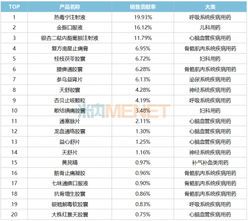表1:2025年Q1-Q3康缘药业中成药TOP20产品