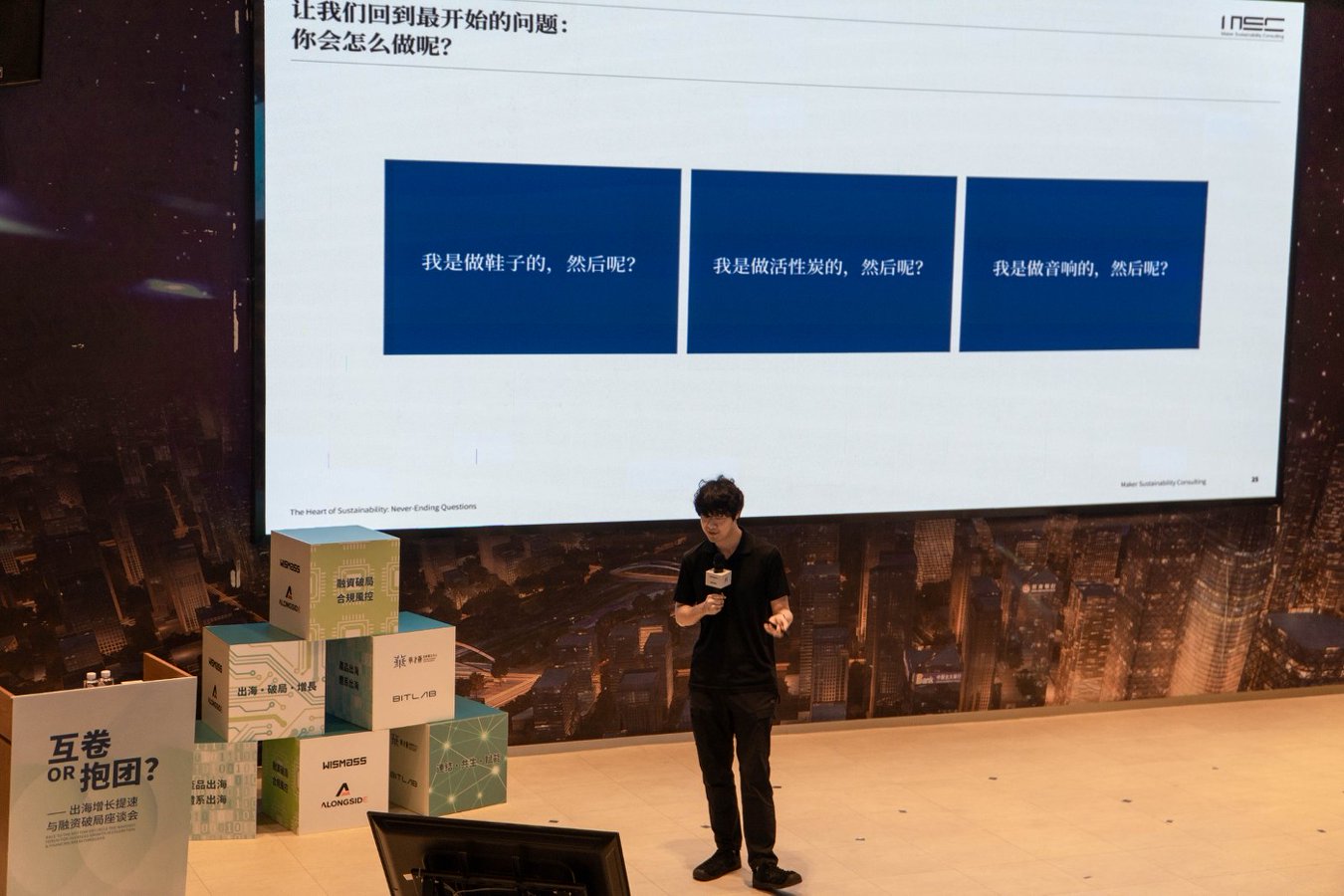 图5:在“战略定力”篇章,MSC咨询创始人谭亚幸(Jacob)并未直接给出答案,而是将问题交还给观众。在全球化的迷宫中,真正的战略始于对自我本质的深刻反思,从而将ESG等挑战,转化为通往全球头部供应链的“通行证”。