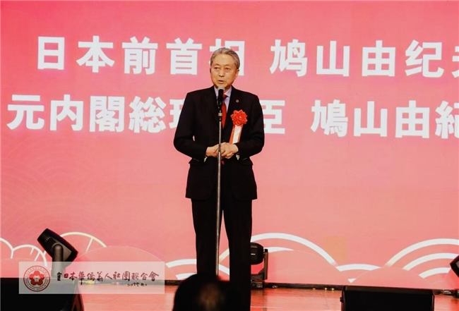 中国驻日大使吴江浩及夫人丁玥、日本前首相鸠山由纪夫亲临致辞。