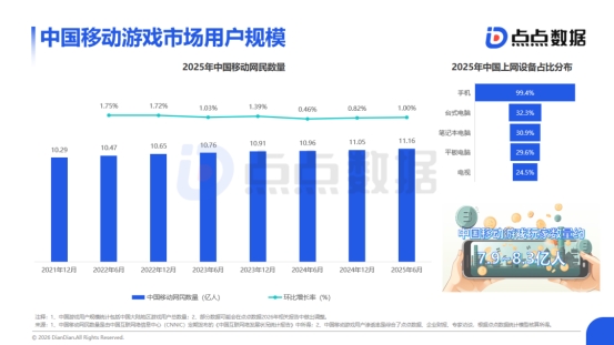 根据中国互联网络信息中心(CNNIC)发布的《第56次中国互联网络发展状况统计报告》所示,中国移动网民数量在2025年6月达到11.16亿人,近年来始终保持着稳定的增长规模。而其中更为重要的是,报告中着重提及了女性玩家数量的影响:“截至2025年6月,女性在网络游戏用户中的占比为48.0%,较 2024年底提升3.1个百分点,上升趋势明显;尤其在手机游戏领域,女性玩家已成为主力军之一。”