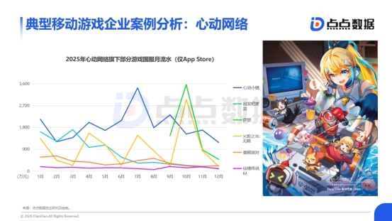 2025年新上线移动游戏市场收入占比从18.9%骤降至7.3%,这一数据或许会使得资本市场不再将新游作为短期财务增长引擎的预期。从往年新游TOP5名单可以看出,成功产品多依托于成熟的端游IP移植(如《逆水寒》《地下城与勇士》)、已验证的赛道融合(如《无尽冬日》)或强势的垂直品类(如《恋与深空》),其成功逻辑可以说是“确定性创新”。