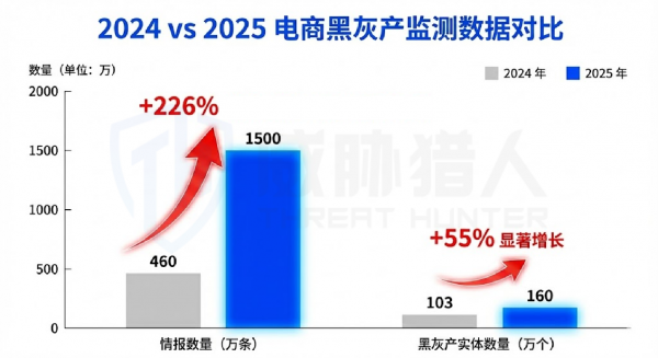 威胁猎人最新发布的《2025年全球电商业务欺诈风险研究报告》揭示了一个严峻现实:电商黑灰产已经完成是黑灰产从"单点违规"向"全生命周期攻击"的全面升级。2025年,全球电商领域监测到的黑灰产风险线索量达1500万条,同比增长226%。报告揭示了AI伪造证据工业化、物流作弊基础设施化、攻击资源真人化、品牌仿冒货盘全球化、恶意退款专业化、全球攻击网络化等2025年电商黑灰产的六大核心趋势。