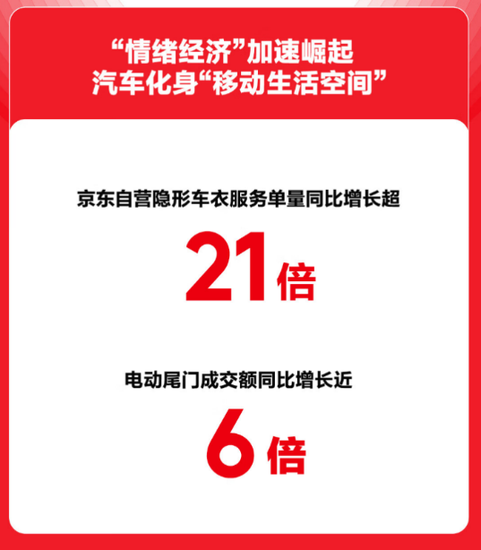 “情绪经济”加速崛起,个性化消费蔚然成风,在汽车改装、汽车用品以及汽车贴膜领域掀起新一波热潮。618期间,京东汽车联合超50家品牌成立“京东汽车改装品牌联盟”,推出行业首个覆盖改装配件全品类、全品牌的“30天免费试用”服务,同时提供假一罚四、12期免息、全场包安装等服务。在此期间,电动尾门成交金额同比增长近6倍,后排多媒体成交金额同比增长超6倍,底盘护板成交金额同比增长超3倍。与此同时,更多消费者通过改变爱车外观表达自我个性,汽车改色膜成交金额同比增长188%,进口隐形车衣成交金额同比增长150%,京东自营隐形车衣服务单量更是实现超21倍的同比增长。