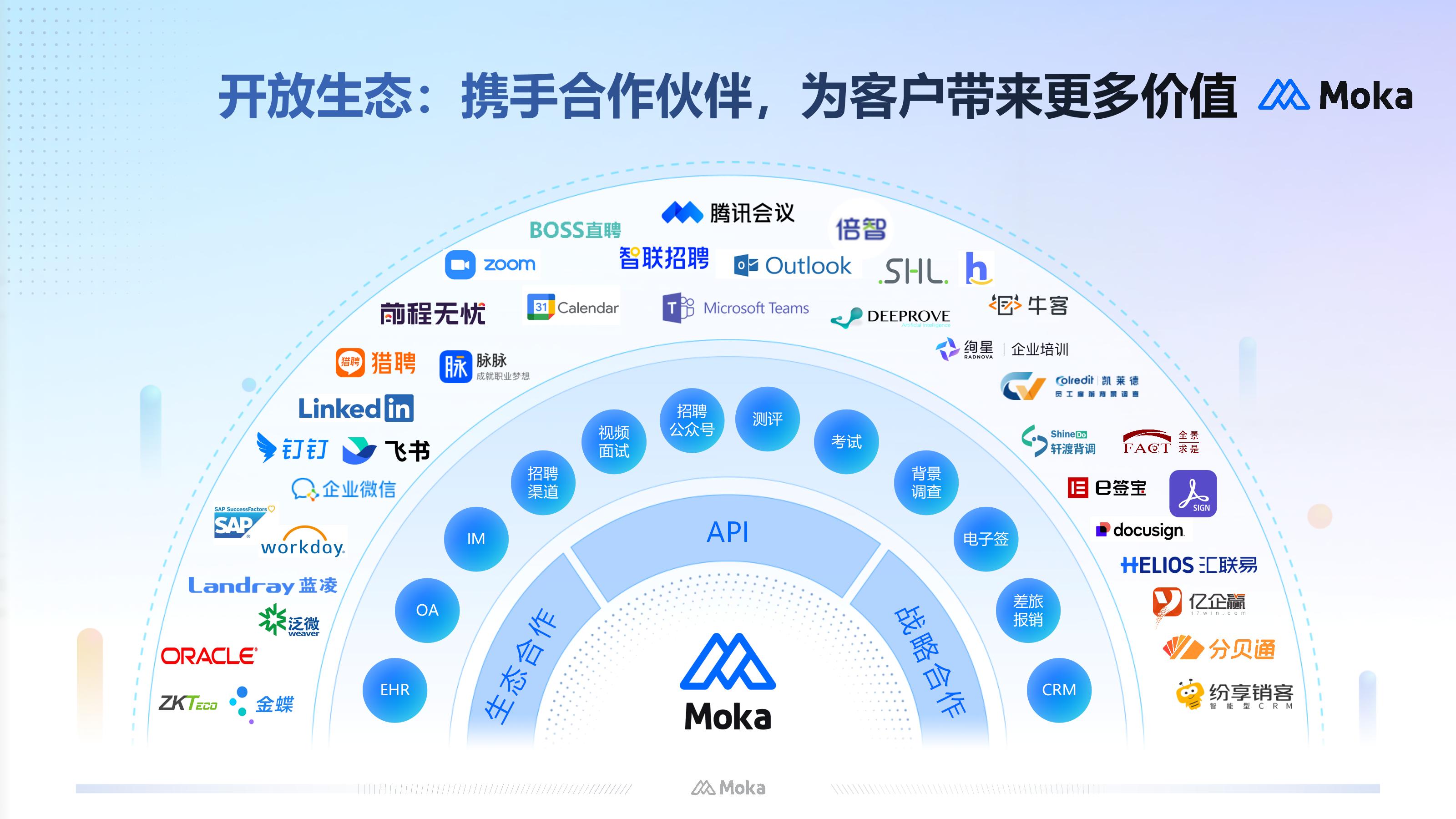 Moka 是亚洲 HR SaaS 领域具有重要影响力的企业,以 “全员体验更好” 为产品设计核心理念,是国内领先的智能招聘管理 + 人事管理系统提供商,2023 年推出行业首个 AI 原生 HR SaaS 解决方案,截至 2025 年已服务超 3000 家中大型企业,覆盖互联网、制造、金融等多行业。